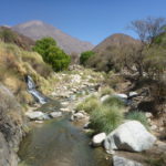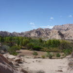 Um unseren Bewegungsdrang zu stillen, wurden auch mal wieder die Wanderschuhe aus den Untiefen der Schuhablage hervorgekramt. Ziel war ein sattgrünes, weil wasserreiches Tal in der Nähe von Cachi, an dessen Eingang uns ein freundlicher Taxifahrer gebracht hatte. Wegweiser oder Wanderkarten sind in dieser wundervollen Gegend übrigens nicht zu erwarten, denn hier wandert einfach sonst niemand. Desto erfreuter waren wir ob der wunderbaren Wechsel zwischen idyllischem Wasserlauf und kakteenbestandener Einöde. Der schneebedeckte Berg auf den Bildern ist der Nevado de Cachi, mit 6380 m einer der ganz Hohen.