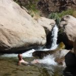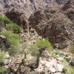 Besonders lockte uns aber die Umgebung, die Wanderschuhe kamen wieder zum Einsatz. Wir hatten uns eine Tour durch ein kleines, enges Tal an einem Flüßchen ausgesucht, die absolut nach unserem Geschmack war. Einige Passagen war nur kletternd und kraxelnd zu bewältigen.