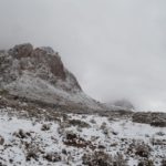 Dass an Klettern nicht zu denken war zeigte nicht nur der Blick aufs Thermometer. Auch der offensichtlich am Vortag frisch gefallene Schnee verbot ein solches Vorhaben, aber die Wanderschuhe sollten sich daran nicht stören. An wärmenden Schichten sollte es nicht fehlen – eine kleine Vorübung für Patagonien. Knapp 4 Kilometer und 300 Höhenmeter weiter befanden wir uns im »Cajón de los Arenales«, einem Tal, das von etlichen Granitwänden gesäumt war. Am Fuße der von 20 bis zu 500 Meter hohen Wände lag freilich noch einiges an Schnee, das wäre für uns absolute Sommerkletterer kein Spaß. Übrigens trafen wir da auch noch zwei argentinische Kletterer, die offensichtlich auch nicht mit diesem Wintereinbruch gerechnet hatten. So wie sie da vor ihrem Zelt standen, kam ihr Optimismus nicht ganz glaubhaft rüber.