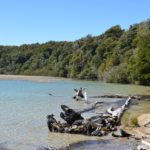 Für die Wanderung auf der 12 km langen Halbinsel bevorzugen wir perfektes Wetter mit strahlend blauem Himmel. Eine Laune der Natur oder besser gesagt glaziale Verschiebungen haben eine Insel mit Steilküste geschaffen, die wiederum in ihrem Inneren zwei glasklare Seen beherbergt. Am hellen, unberührten Strand der grünen Lagunen finden wir uns nun so richtig in Patagonien angekommen. Wir zwei Glückseligen sitzen einfach mal eine Stunde stumm vor dieser Kulisse, die mit ihren schneebedeckten Bergen im Hintergrund Titelbild jedes Reisekatalogs sein könnte.