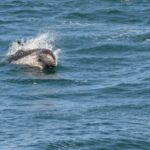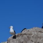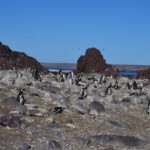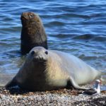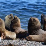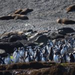 Neben unseren gefiederten Freunden konnten wir aber auch noch eine Versammlung von Seelöwen beobachten, die sich entweder im Wasser tummelten oder träge am Strand lagen. Sogar zwei Seeelefanten hatten sich unter die ansonsten braune Schar gemischt. Und weil uns das Glück an diesem Tag besonders hold war, begleiteten unser Boot auf der Rückfahrt zwei Commerson-Delfine, die es auch nur hier zwischen Feuerland und den Falkland-Inseln gibt und die in stürmischer Fahrt gar nicht so leicht vor die Linse zu bekommen waren.