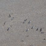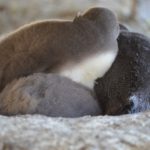 Der größte Teil von ihnen liegt am Strand, putzt sich das Gefieder und lässt sich von der Sonne wärmen. Einige tummeln sich im Wasser und demonstrieren ihre Schwimmkünste. Kellner eilen geschäftig hin und her, den Bauch voller Fisch. Im Hinterland zwischen Gesträuch und Gras hockt die Nachkommenschaft und wartet auf das Mittagessen. Die lieben Kleinen sind zu dieser Jahreszeit schon relativ weit, zwar tragen sie noch den Babyflaum, sind aber bereits fast so groß wie Mama und Papa. Bald können sie das erste Mal baden gehen und den Fisch selber fangen.