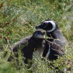 Bemerkenswert ist es, dass sich die possierlichen Tierchen nicht von den Menschen stören lassen, deren Besuchspfad mitten durch die Strauchlandschaft gebaut ist – manche Nester liegen gerade mal eine Armlänge von Gesichtern und Objektiven entfernt. So können sich die Pinguine die Menschen besonders genau anschauen, vor denen sie keine Angst zu haben scheinen. Bei gerade mal 70 Zentimetern Körpergröße müssen die Menschen den Magellan-Pinguinen doch riesig vorkommen. Vielleicht beneiden sie uns wenigstens um unsere Geschicklichkeit beim Laufen: Sie sind zwar exzellente Schwimmer, aber zu Fuß sind sie doch eher unbeholfen unterwegs. Ab und zu watschelt einer in seiner putzigen Pinguin-Gangart durch die Büsche oder direkt über unseren Weg.