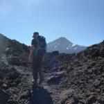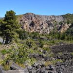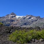 Von der Öffentlichkeit unbemerkt haben wir die mathematische Mitte unserer Expedition erreicht und entsprechend gefeiert. Doch was wäre ein Bergfest ohne Berge? Zum Feiern haben wir uns den »Parque Nacional Las Lajas« mit dem Volcán Antuco ausgesucht. Dieser Nationalpark ist zwar nicht so bekannt wie einige der vormals besuchten, aber besticht durch eine einzigartige, seltene Vegetation in einer rauen Landschaft, die sich nach einem Vulkanausbruch gebildet hat. Der ist zwar schon über 150 Jahre her, dennoch dürfte sich die Kulisse prima für einen Film über das Leben auf dem Mond eignen. Das Gestein ist schwarz und trocken und fühlt sich an wie Schlacke; wahrscheinlich weil es eben keine Feuchtigkeit speichert, ist die Gegend für Pflanzen richtig unattraktiv. Dort aber, wo das Wasser der Gletscherflüsse, die die Lavafelder unterirdisch passieren, wieder ans Tageslicht treten, explodiert die Vegetation förmlich und besticht durch eine farbige Fröhlichkeit ohnegleichen.