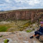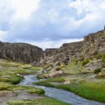 Da haben wir doch wieder mal eine einzigartige Landschaft erwischt! Eingerahmt von Felsmassiven, die aus rötlichem Sandstein bestehen, hat Mutter Natur ein paar Wiesenmatten ausgelegt. Dazwischen plätschern zwei Bächlein, und so freuen sich Lamas, Kühe und Schafe an sattem Grün und frischem Quell. Wir knabbern zwar nicht am Gras und saufen auch nicht aus dem Bach, aber auch für das Auge ist das Grün wohltuend. Und die Höhenluft ist garantiert richtig gesund.