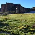 Hägar hat es im Randgebiet von Potosí tapfer auf 4200 Höhenmeter geschafft. Unser Ziel liegt glücklicherweise etwas tiefer. Wir steuern die Estáncia Churata an, ein liebliches Tal auf „nur“ 3850 Metern, das vorwiegend von Lamas, Kühen und Schafen, aber auch wenigen Menschen bewohnt wird. Die Höhenlage sieht man dem fruchtbaren Tal gar nicht an, die Wiesen sind saftig dank reichlich vorkommenden Wassers und die Tiere führen ein sorgloses Leben. Hier befindet sich auch ein Refugio eines den Klettersport liebenden Bolivianers, der sein Haus nicht mehr benötigt und daher als Berghütte umgestaltet hat. Doch das gehört eigentlich schon in den folgenden Beitrag.