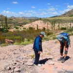 Aus der gemäßigten Höhenlage der Hauptstadt geht es stetig bergauf, mehr als tausend Höhenmeter höher weichen die grünen Berge schroffen Spitzen. Eine der Londoner Towerbridge nachempfundene Brücke steht sinnlos in einem Flusstal – es gibt keinen Weg mehr, für den man sie überqueren sollte und deswegen ist sie wohl auch baufällig. Am Abend finden wir einen idyllischen Übernachtungsplatz an einem kleinen Flüsschen. Nebenan befindet sich eine kleine Obstplantage, deren Besitzer Juán sehr erfreut über Besuch aus dem fernen Europa ist. Es zeigt sich wieder bolivianische Gastfreundlichkeit, denn er erntet Pfirsiche und Kräuter frisch für uns. Am nächsten Morgen führt er uns zu Felszeichnungen, deren Alter auf über 8000 Jahre geschätzt wird. Sichtlich stolz zeigt Juán uns sein Tal, das er samt der Sehenswürdigkeiten von seinen Eltern geerbt hat. Dass er die Existenz der Zeichnungen noch nicht vermarktet hat, ist sicher auch eine Art Naturschutz.