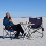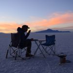 Wir übernachten mitten auf dem Salar und sind erstaunt über die absolute Ruhe, die uns umgibt. Wir fühlen uns wie auf einem anderen Planeten und genießen die unendliche Weite, Freiheit pur. Nach dem fantastischen Sonnenuntergang setzt die Natur noch einen drauf und zeigt uns einen weder beschreibbaren noch zu fotografierenden Sternenhimmel. Zum Naturerlebnis gehören natürlich auch die entsprechenden Temperaturen, morgens kalt knapp über dem Gefrierpunkt. Aber mit der Sonne kommt die wohlige Wärme, über Mittag fast 20 Grad. Dabei erstaunlicherweise kaum Wind.