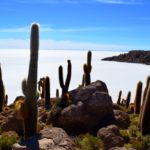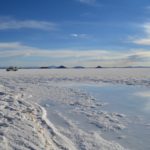 Mit etwas mehr als 12.000 Quadratkilometern Fläche ist der Salar de Uyuni die größte Salzfläche der Welt. Der von den Einheimischen auch Weißes Meer genannte Salzsee ist etwa 160 Kilometer lang und 135 Kilometer breit, die Salzkruste ist bis zu 7 Meter dick. Er liegt auf einer Höhe von 3650 Metern. In der Regenzeit steht die Fläche komplett unter Wasser, dann wird er zum größten Spiegel der Welt. Nach dem Abtrocknen wirkt er wie ein weißer Ausläufer eines unvorstellbaren Nichts, es gibt nur noch den blauen Himmel und den weißen Boden, der Horizont verschwindet.