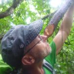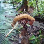 Pachamama, Mutter Erde, wurde am ersten Abend ein Opfer dargebracht, bestehend aus Coca-Blättern, Tabak und Alkohol. Ehrfurchtsvoll bat man um gutes Wetter und viele Begegnungen mit Tieren. Entweder hat Pachamama hier einiges nicht verstanden oder beim Ritual ist etwas schief gelaufen, denn in der zweiten Nacht gab es ein fürchterliches Gewitter. Auch in der dritten Nacht und die beiden letzten Tage hat es dann ziemlich viel geregnet, so dass die erhofften Begegnungen mit Tieren sozusagen ins Wasser gefallen sind – die mögen die Nässe nämlich ebenso wenig. Immerhin hat Silke einen Jaguar gesehen, der im Dickicht vor sich hin gedöst haben musste. Einige kleinere Affen kreuzten anfangs unseren Weg, von den großen war wenigstens das Gebrüll in der Ferne zu hören. Von Papageien sah man mitunter Scherenschnitte am grauen Himmel und die roten Aras ließen sich in den Wipfeln entfernter Bäume ausmachen. Es gab Schmetterlinge in Hülle und Fülle und in jeder Größe. Vom scheuen Tapir, der ohnehin nachtaktiv ist, fanden wir immer wieder Spuren im Ufersand. Verwöhnt wurden wir allerdings von den Geräuschen des Urwaldes, vor allem nachts ist das Konzert der Grillen, Frösche und anderer Bewohner hörenswert.