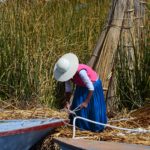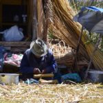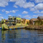 Aus dem Torf des schwimmenden Totora-Schilfs, das an den seichten Ufern zuhauf wächst, werden größere Quader gestochen, von denen bis zu hundert Stück mit Stricken zu einer Insel verbunden werden. Darauf kommen dann mehrere Schichten Schilf, das im Laufe der Jahre immer wieder von oben ergänzt wird. Dadurch ist der Boden der Insel ganz weich und federnd. Auf dieser Plattform werden dann Hütten gebaut und jede Insel hat einen Aussichtsturm, der ursprünglich der Verständigung zwischen den Inseln diente. Traditionelle Fortbewegungsmittel sind Schilfboote, entweder die einfache Form oder die größere Variante mit Doppelrumpf und Tierköpfen, die Platz für die ganze Familie bietet.