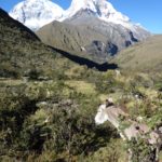 Lg. 69 ist wirklich sehr schön, sie erinnert uns ein wenig an den Gletschersee zu Füßen der Torre del Paine in Chile. Die gigantische Eiswand des Chachraraju (6112 m) ist so nah, dass unser Weitwinkelobjektiv fast nicht ausreicht. Erschöpft aber glücklich genießen wir die wilde Natur. Für die verdiente Marschverpflegung allerdings steigen wir wieder etwas ab und haben ein idyllisches Fleckchen ganz für uns allein, während sich am See die Touristen tummeln.