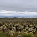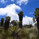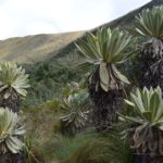 Eine weitere seltene Spezies siedelt zwischen den Freilejones: es sind hartblättrige, mit Dornen versehene Bromelien. Nur einmal in ihrem Leben blühen sie und treiben einen mit blauen Blüten reich besetzten Stamm in die Höhe. Bestäubt werden sie übrigens von Kolibris.